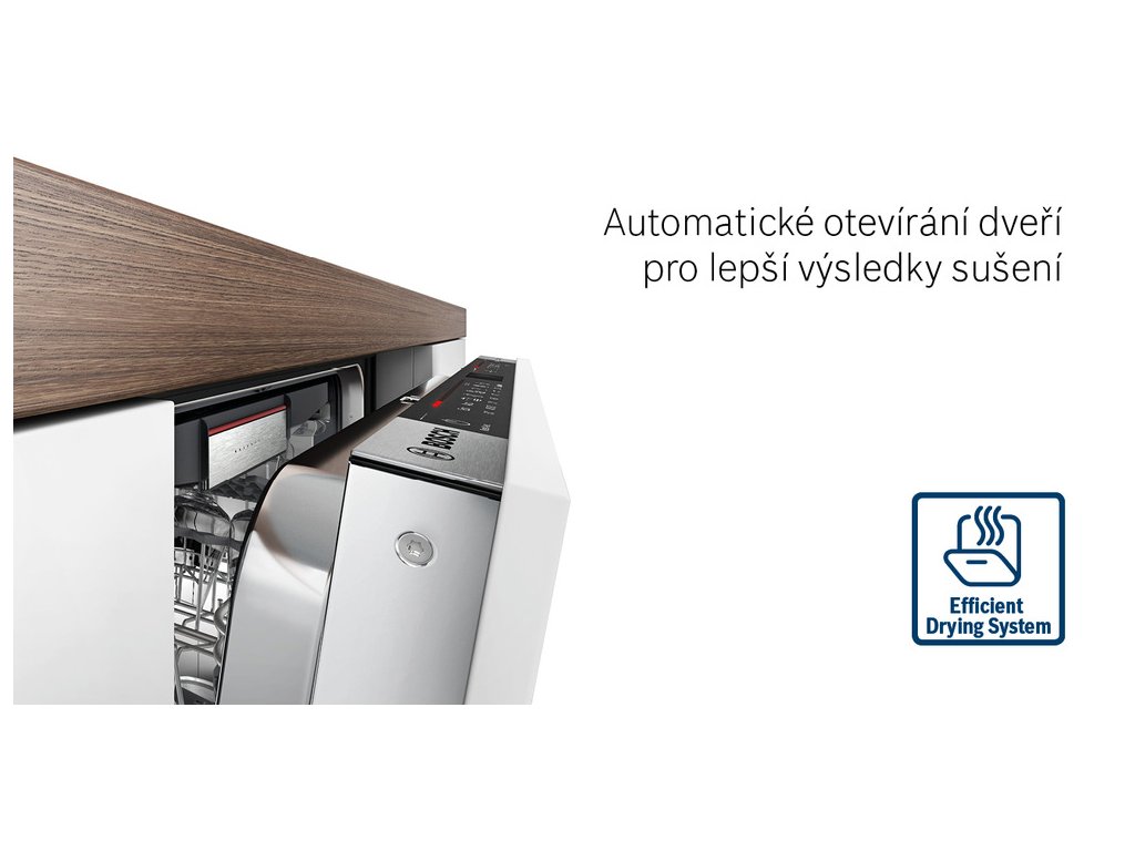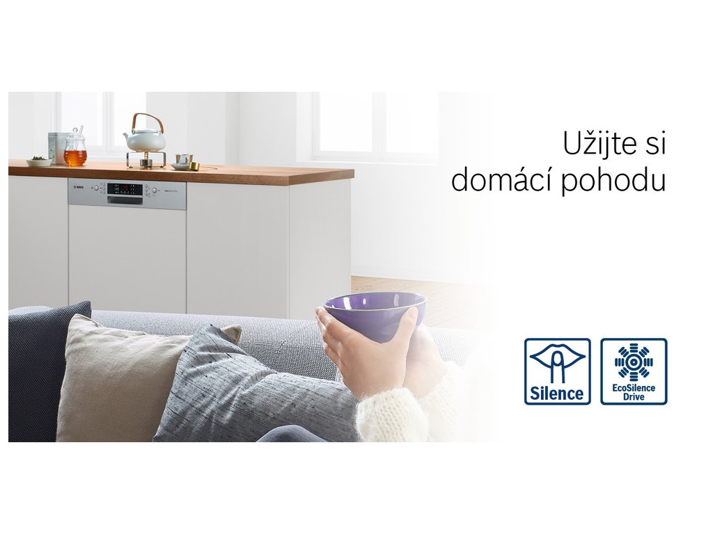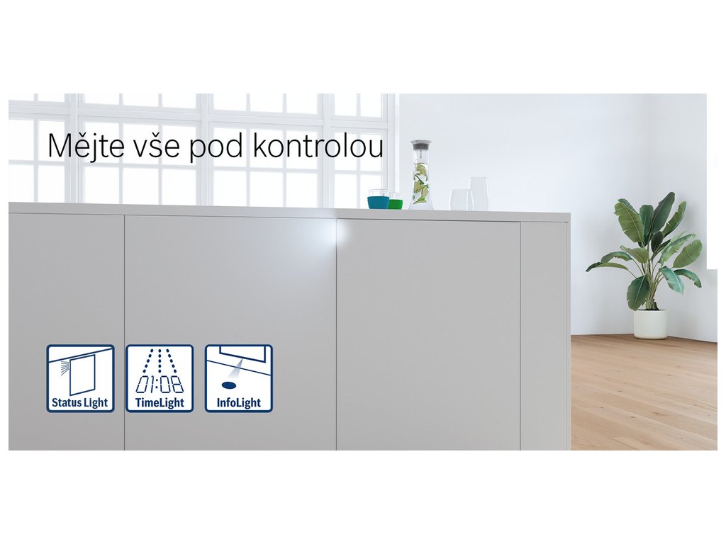 Všetky Myčky spĺňajú normy Inštitútu pre integrovanú hygienu a virológiu, takže sa môžu pochváliť ocenením Level 1 a Level 3 Hygiene Awards! Vírusy, ako napríklad koronavírus alebo chrípka, sú už odstránené pomocou programu Eco 50°C. S odolnejšími vírusmi si poradia programy Intenzívna 70 °C a udržiavacia Péče o umývačku. Jednoduchšie to už byť nemôže. Stiahnite si aplikáciu Home Connect, pripojte umývačku k sieti Wi-Fi a vložte riad. Ovládajte svoj spotrebič odkiaľkoľvek. Či už ste v práci, na záhrade, na ihrisku alebo na pohovke v obývačke. Vďaka partnerstvu so službou Amazon Alexa môžete dokonca umývačke riadu zadávať hlasové príkazy. Nastavte program, skontrolujte priebeh umývania alebo použite diaľkovú diagnostiku. Majte svoju umývačku riadu vo svojich rukách. Sušenie ručníkom už nie je potrebné! S technológiou PerfectDry bude riad dokonale suchý vďaka prírodnému minerálnemu zeolitu. Vlhký vzduch sa prenáša cez minerál, ktorý absorbuje vlhkosť z umývacieho procesu a premieňa ju na teplý suchý vzduch. Ten umývačka využíva počas procesu sušenia. Šetríte tak energiu a čas. Riad je Máte radi nerušený relax? S novými technológiami umývačky a motora Bosch EcoSilence Drive si môžete vychutnať tichú chvíľu aj počas umývania. Vysoko výkonný motor je mimoriadne tichý a navyše šetrí energiu. U umývačky riadu, ktorá nemá predný panel, je ťažké na prvý pohľad zistiť, či ešte stále umýva. Vďaka svetelnej indikácii vám umývačka dá vedieť, kedy sa umývanie skončilo alebo či ešte prebieha. Nádobie by sa malo v skriniach skladovať v suchu. Aby ste nemuseli riad sušiť utierkou, funkcia EfficientDry po skončení programu automaticky otvorí dvierka umývačky. Toto praktické riešenie šetrí energiu, zlepšuje proces sušenia, zabraňuje kondenzácii a jemne ochladzuje riad, takže je pripravený na okamžité odloženie. ParametreEfektívne využívajte svoj čas s inteligentnou domácnosťou