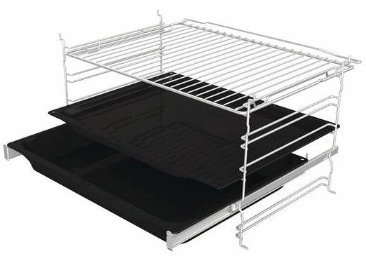 Rúra je vybavená jednoúrovňovými teleskopickými výsuvmi plechov, takže sa môžete spoľahnúť na bezpečnú a pohodlnú manipuláciu s plechmi počas pečenia.