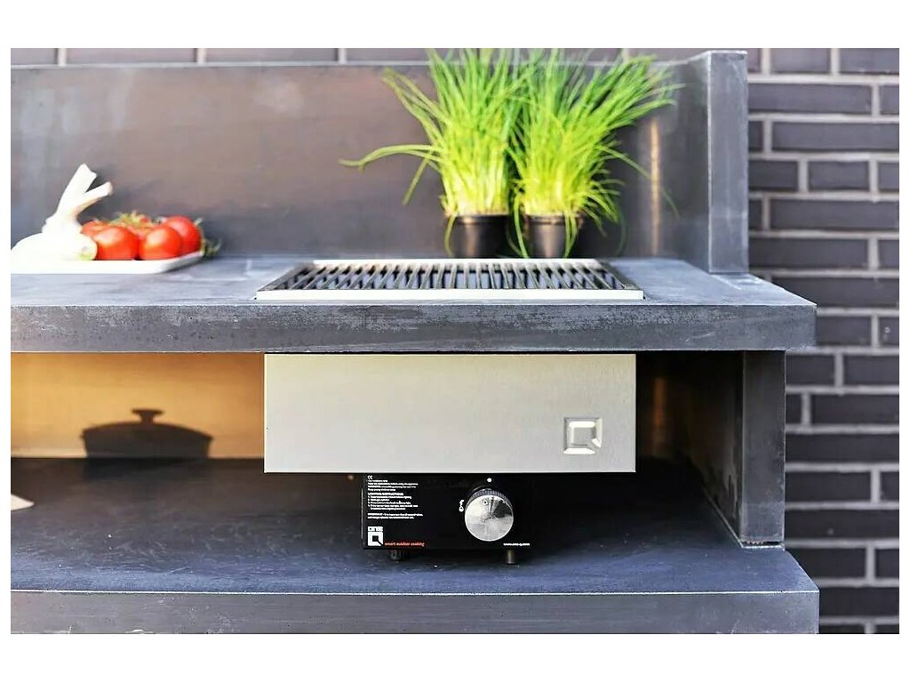 Vstavaná zásuvka ONEQ umožňuje stabilné a bezpečné umiestnenie grilovacích modulov, čím zvyšuje komfort aj bezpečnosť pri príprave jedla. Vytvorte si vonkajšiu kuchyňu presne podľa svojich predstáv a užívajte si grilovanie bez kompromisov.