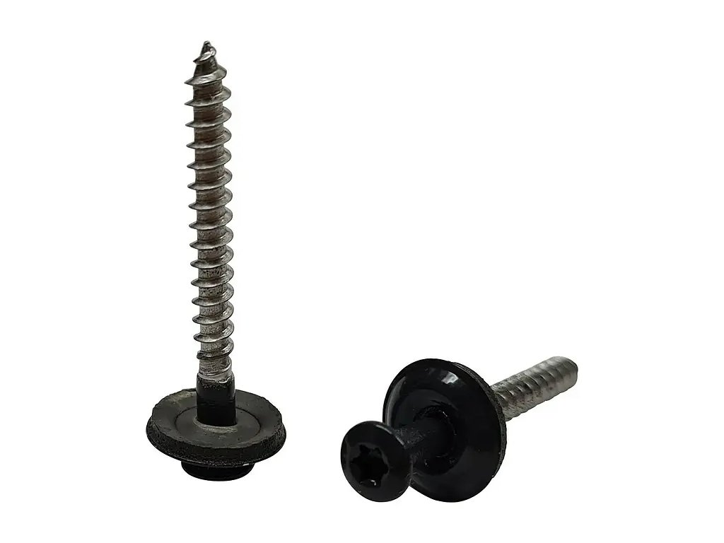 Integrovaná podložka s tesniacim krúžkom účinne zabraňuje prenikaniu vlhkosti do oblasti hlavy skrutky, čo prispieva k dlhšej životnosti spoja. Pohon TORX TX20 zabezpečuje presný prenos sily, minimalizuje riziko strihu hlavy a umožňuje pohodlné a rýchle skrutkovanie aj pri veľkom počte kusov.