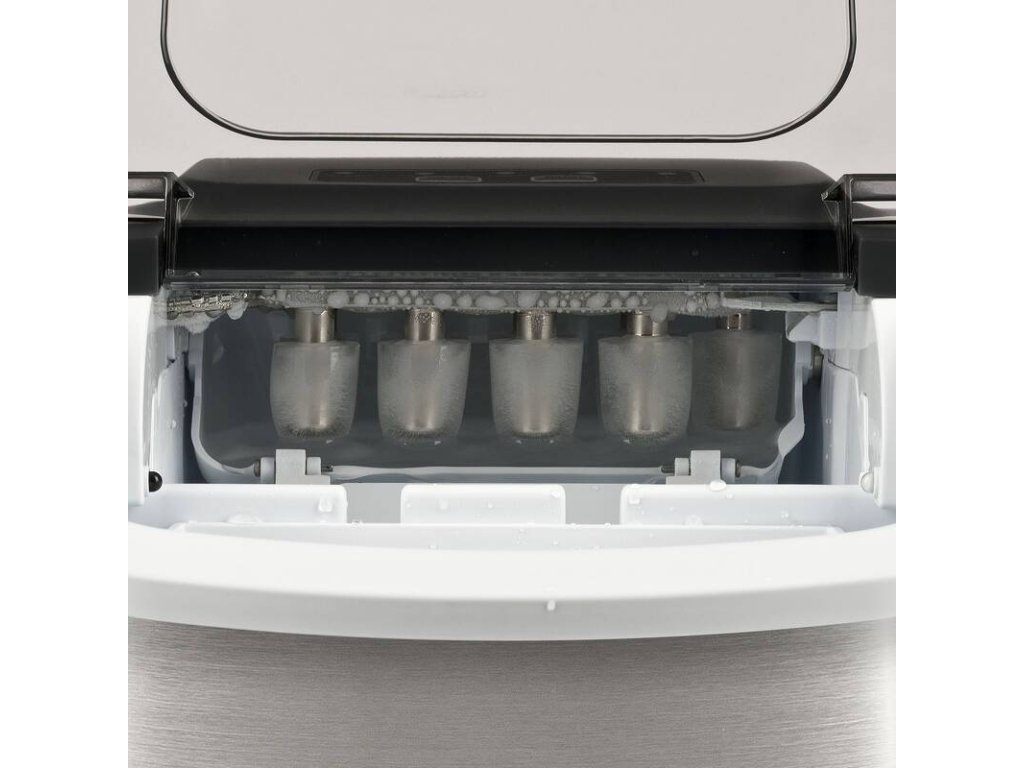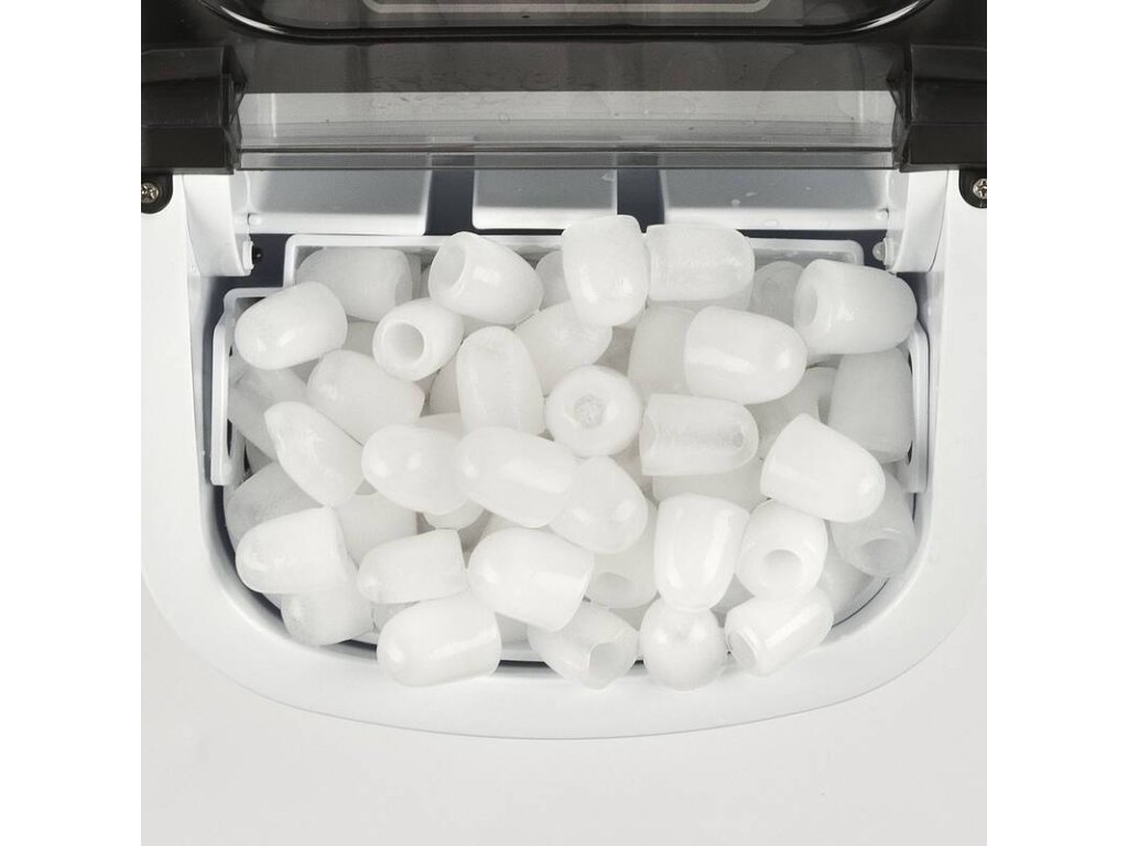 Kompaktný výrobník ľadu G3 Ferrari G20139 je vždy pripravený na osviežujúce nápoje. Má výrobnú kapacitu 12 kg/24 h, t. j. 1400 kociek. Nádržka na vodu má objem 1,2 l a zásobník na kocky má objem 600 g. Na výber sú 2 veľkosti kociek ľadu. Používanie je jednoduché, stačí stlačiť tlačidlo na LED paneli.