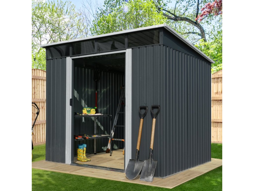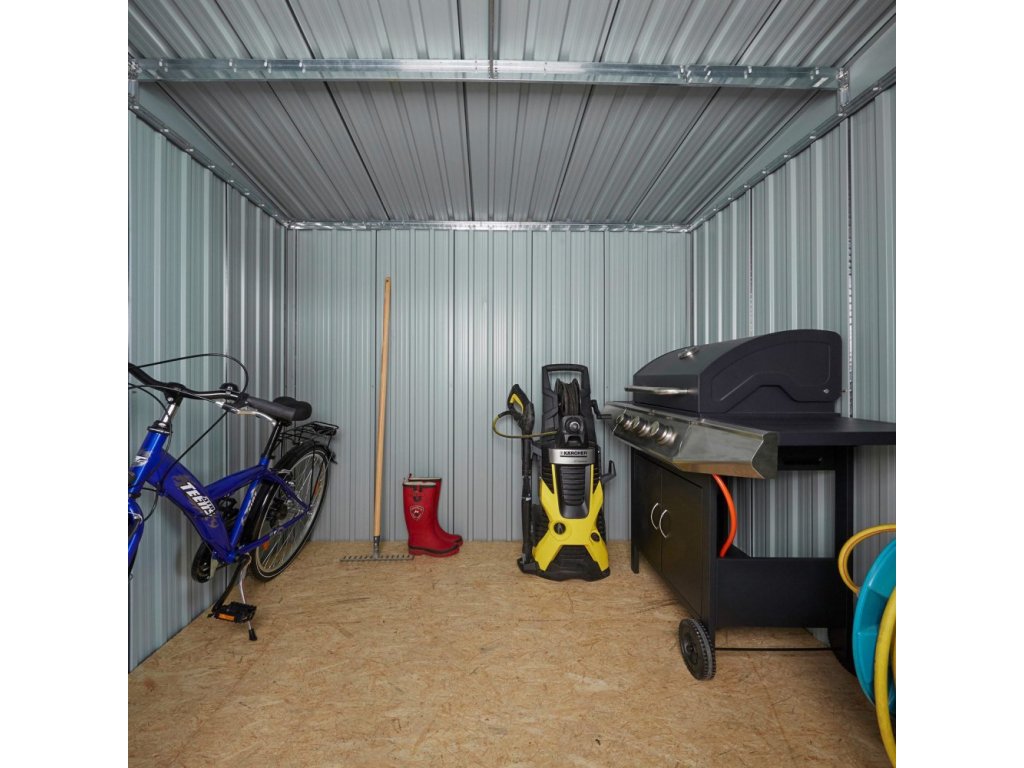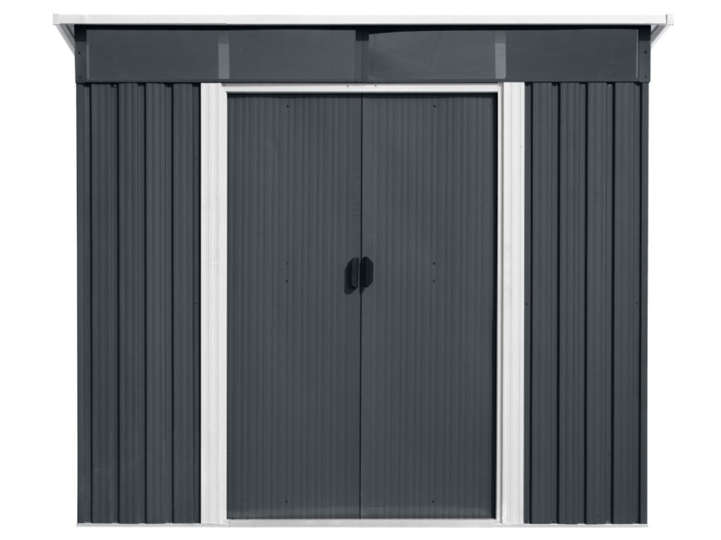 Odolný voči dažďu, snehu a vetruOcelová konštrukcia dodáva domčeku odolné a robustné vlastnosti. Stavba je veľmi jednoduchá a pohodlná.TIP: Vďaka streche v tvare pultovej strechy sa na záhradnom domčeku nezhromažďuje voda.