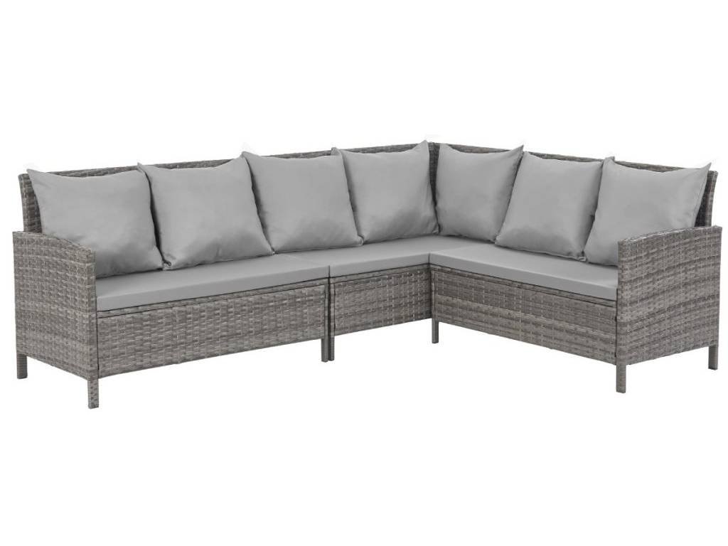 Trojdielna rohová pohovka ponúka dostatok priestoru pre vás a vašich hostí. Sedacia časť je vybavená sedem pohodlnými vankúšmi, ktoré slúžia ako operadlo a poskytujú maximálne pohodlie pri sedení. Vankúše sú vyrobené z kvalitného polyesteru s hmotnosťou 180 g, čo zaručuje ich trvanlivosť a odolnosť voči poveternostným podmienkam. Okrem toho má sedadlo po oboch stranách podrúčky, ktoré prispievajú k celkovému pohodliu a elegantnému vzhľadu.