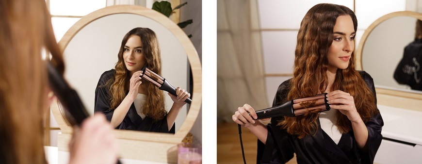 Romantické jemné vlny ako zo salónu dosiahnete s Etta Fenité 9337 90000 trojkulmovým fénom. Na výber budete mať 4 veľkosti stredového tŕňa, takže si môžete vytvoriť niekoľko rôznych variantov účesu. Dĺžka stredového tŕňa je 110 mm a priemer 19 mm. Teplotu môžete pohodlne nastaviť od 160 do 210 °C.