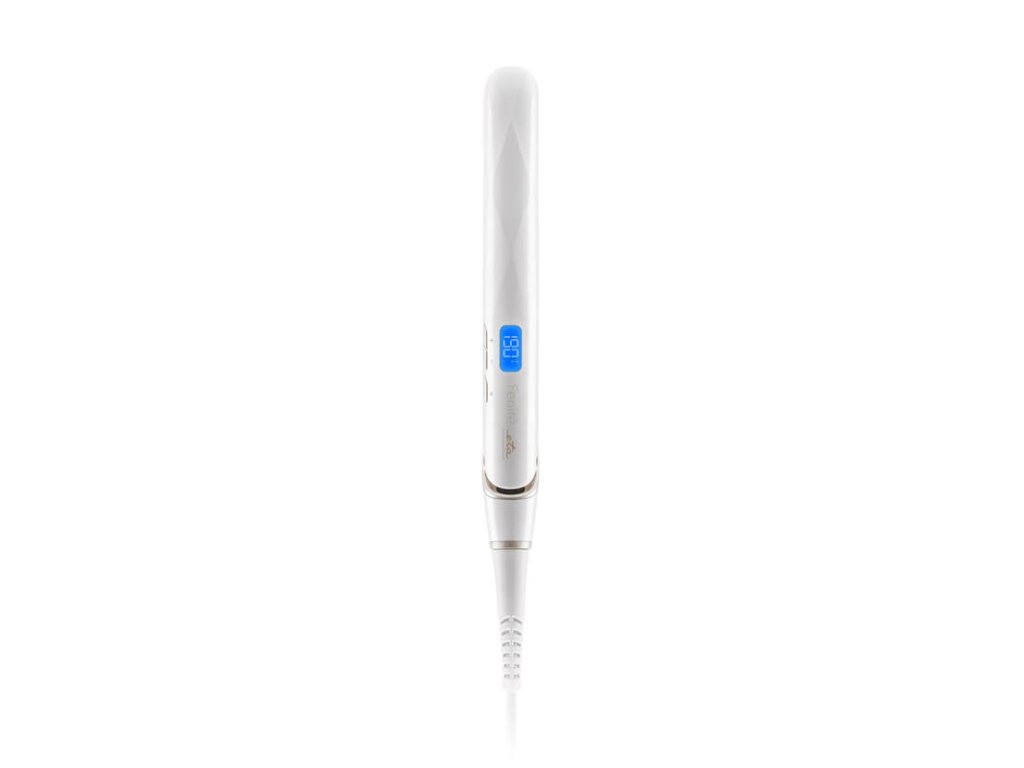 Žehlička ETA Fenité je vybavená PTC výhrevnými telesami, ktoré umožňujú veľmi rýchle zahriatie. Nastavenie teploty môžete zvoliť podľa typu vlasov a ich poddajnosti v teplotnom rozsahu od 150 do 230 °C. Regulácia sa vykonáva elektronicky pomocou tlačidiel + a - v krokoch po 10 °C. Prehľadný LED displej zobrazuje aktuálne nastavenia. Manipuláciu so žehličkou uľahčuje dostatočne dlhý napájací kábel s dĺžkou 1,69 m. Vlákno je otočné a poskytuje vám tak dostatok voľnosti pre pohodlnú úpravu vlasov. Praktické umožňuje zavesiť žehličku na chladenie alebo ju uložiť tak, aby bola vždy po ruke.