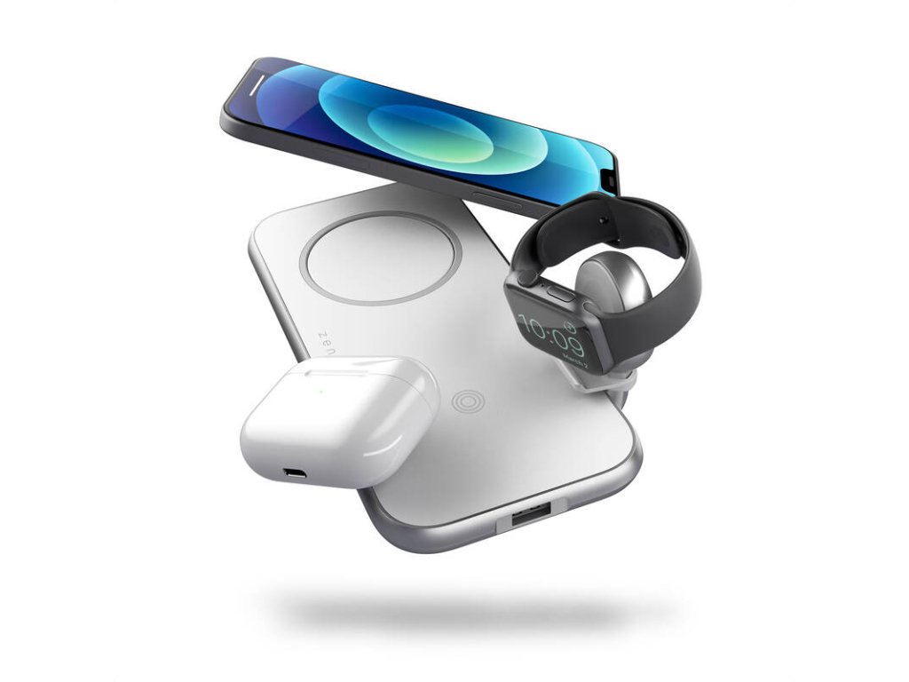 Nabíjajte svoj iPhone, Apple Watch alebo AirPods bezdrôtovo a zároveň štýlovo sBezdrôtová Nabíjačka 4 v 1ZENS. Vďaka svojmu elegantnému a prémiovému dizajnu zprvotriedneho dizajnového hliníka sa stane ozdobou vášho pracovného stola alebo nočného stolíka. Nabíjačka je navrhnutá tak, aby spolupracovala s Technológiou MagSafe spoločnosti Apple a dokáže bezdrôtovo nabíjať tri zariadenia súčasne. Na zadnej strane má integrovaný port USB-A, ktorý môžete použiť na nabíjanie štvrtého zariadenia.