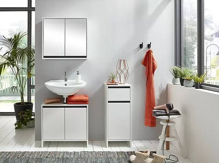 Zrkadlová skrinka Basic ponúka priestor na uloženie rôznych predmetov. Skladá sa z dvoch dvierok a dvoch políc. Poličky sú odnímateľné, čo ponúka flexibilný úložný priestor. Zrkadlová skrinka sa dodáva predmontovaná na jednoduchú montáž a možno ju kombinovať s toaletnou skrinkou a bočnou skrinkou z rovnakej série.