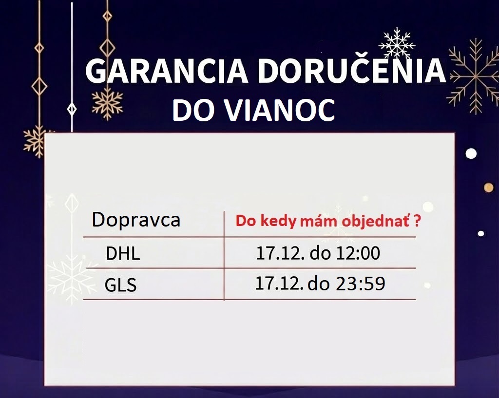 Neskoršie objednávky sa budeme snažiť expedovať čo najrýchlejšie, ale doručenie do Vianoc už nemôžeme garantovať.